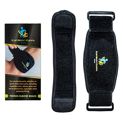 BUY AND TRY. Kamileon Kares offers you a full money back guarantee if you are not happy for any reason as we are confident that our forearm support brace/strap will help with symptoms of elbow tendonitis, lateral epicondylitis, golf elbow (medial epicondylitis), arthritis, raquet sports injuries and all repetitive strain injuries