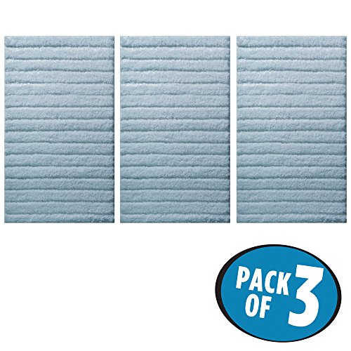 mDesign Soft Microfiber Non-Slip Bathroom Mat/Rug for Bathroom, Vanity, Bathtub/Shower, Dorm Room - Pack of 3, 34" x 21", Water Blue