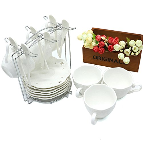 Studio : Buorsa Publisher : Buorsa Product Description Complete 6-Piece Cup and Saucer Set Cup Capacity: 7 ounces Enjoy all your favorite coffee in style with a 6-piece coffee cup and saucer set. Whether you love a coffee in the morning or appreciate a cup of coffee after a meal with friends, these colorful cups and saucers make it all a little more satisfying. 0