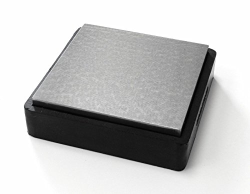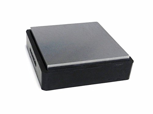 STEEL BLOCK with RUBBER BASE USE BOTH SIDES as NEEDED- COMBINATION STEEL & RUBBER BLOCK 4" SQUARE STEEL BLOCK- A square steel block fitted onto a rubber base, a clever idea that can be very useful. The rubber base absorbs the shock and reduces vibration on your bench or work surface. The rubber base is handy and can be used with the block reversed (Upside Down) when a soft non marring surface is needed for hammering as well as filling. Tool block can be used for different applications, can be used for Flattening, marking or stamping metals, sheet and wire. We carry a smaller size 2-1/2" version as well please see the last picture to compare both items. JETS Product # 0407-544 APPLICATION: Jewelry Making - Metal Smiths - Bead & Wire Work - Hobby & Crafts - Leather-work - Watchmakers