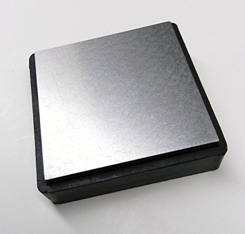 SPECIFICATIONS: - Square Steel Block: 4" x 21/32"Thick - 97mm x 16.7mmThick - Rubber Outer Base: 4-19/64" x 15/16"Height - 109mm x 23.3mm Height - Overall Outer Dimensions: 4-19/64"Sq x 1-11/64Height - 109mmSq x29.8mm Height - Total Weight: 3.3Lbs - 1.5kgs CONDITION: ITEM IS NEW NEVER USED - Block is a Value priced item may have some imperfections overall it is a Good useable product.