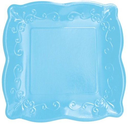 8-Count Elise Scalloped Embossed 7" Square Premium Paper Plates, Azure