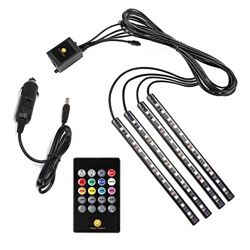 COOL AUTOMOTIVE ACCENT LIGHT - Includes 4 Pieces of 100% Brand New, Superior Quality, Car Automotive DC 12V LED RGB Multicolor Strip Lights Car Interior Decorative Accent Light Atmosphere Lighting Kit with Sound Active Function and Wireless Remote Controller.