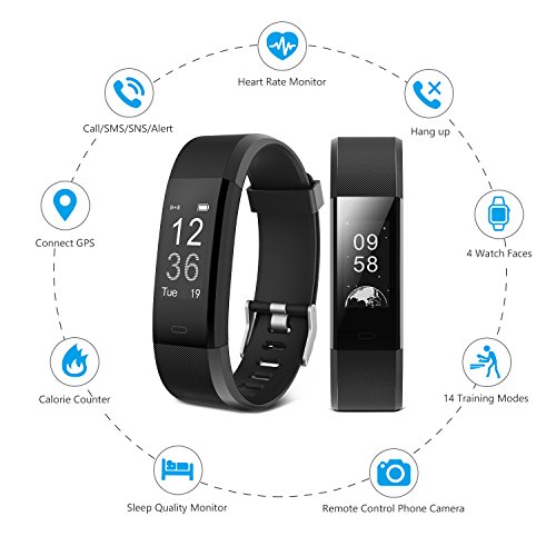 Multi-sport Modes - 14 types of sports mode, pedometer, distance, calorie, sleeping monitor, multiple sports modes, alarm clock, remote camera control, sedentary alert, in-coming call alert, heart rate monitor