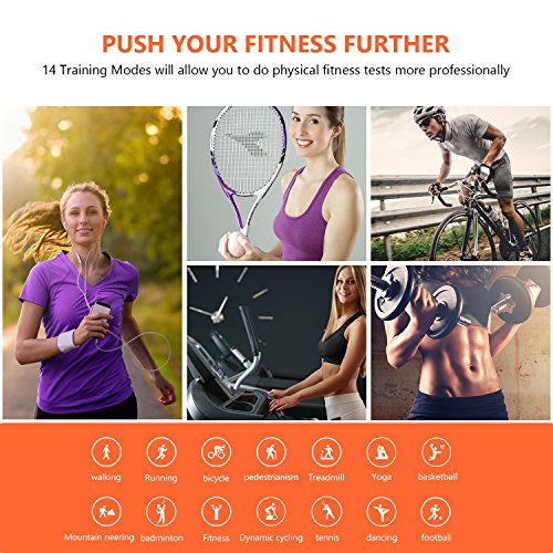 14 Training Modes: 3 Default activity mode, additional 11 activity modes can be added in the APP: walking, running, bicycle, pedestrianism, hiking, badminton, fitness, dynamic cycling, treadmill, yoga, basketball, tennis, football, dancing.