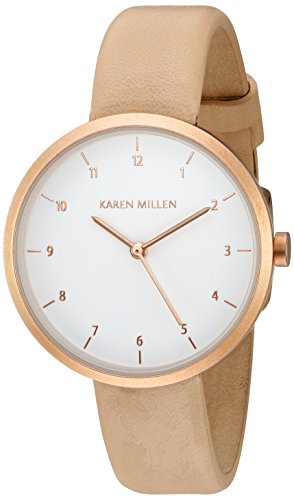 Karen Millen Women's Quartz Brass-Plated-Stainless-Steel and Leather Dress Watch, Color:Beige (Model: KM135CRG)