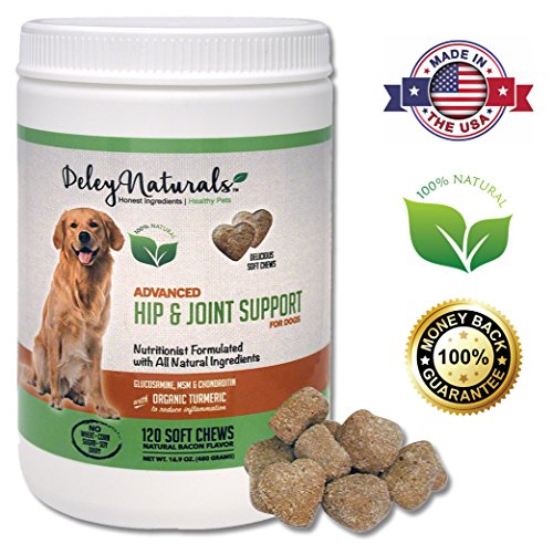 -. Title : Deley Naturals, Advanced Arthritis Pain Relief for Dogs. Glucosamine for Dogs with Chondroitin, MSM & Organic Turmeric. 100% Natural Hip & Joint Supplement for Dogs. 120 Bacon Soft Chews