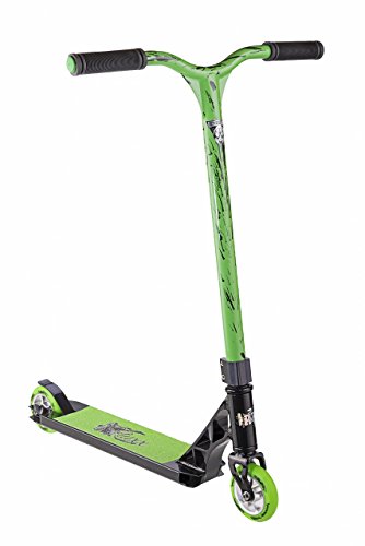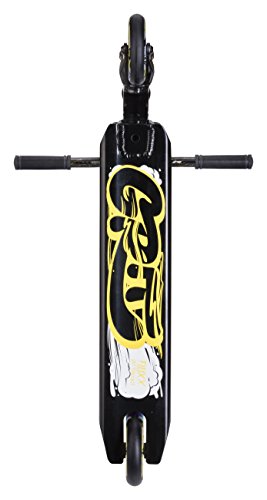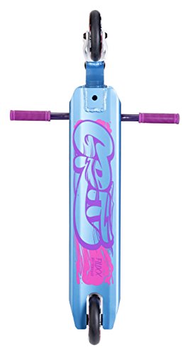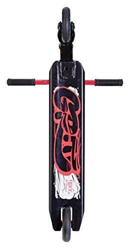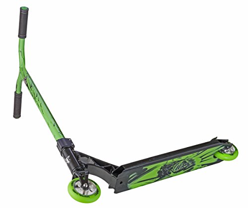 -. Feature : SKILL LEVEL: Beginner/Intermediate Rider, WEIGHT: 7.67 lbs / DECK: 4" W x 18" L with Grit Skeletonized Down Tube Triple Channel 6061 Heat Treated Alloy and 3 degrees Concavity and Integrated Grind Rail / COMPRESSION: Threaded, FORK/HEADSET: Threaded High Tensile Steel HIC Fork, CLAMP: 31.8mm Alloy Double Clamp / BARS: 21.25" H x 18" W Reinforced Gusseted Riser Bars, GRIPS: Soft Feel Grips / WHEELS: 100mm 85A PU Alloy Core 2 Color Wheels with ABEC 9 Bearings, BRAKE: Grit Flex Fender Brake with no rattle