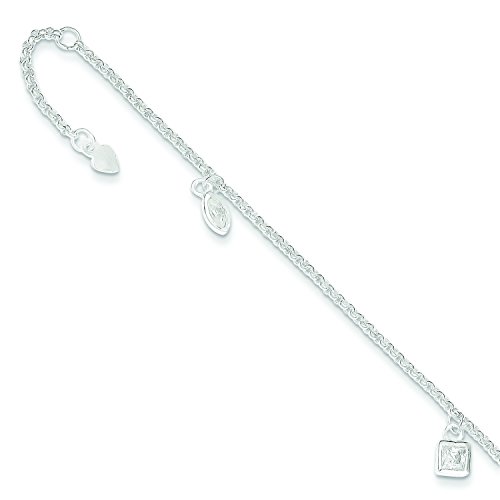 -. Title : Sterling Silver 9 + 1in Ext Hanging Cz Charms Anklet