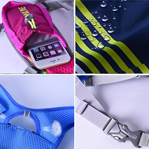 -. Feature : Equipped with two 8.5oz/250ml Water Bottles / Ergological placement of back pocket mesh for optimal comfort and breathability / Comfortable, wide vest shoulder straps distribute weight effectively / Easy on/off with full side adjustability and a stretch mesh smart phone compatible pocket / Designed to carry water bottle, extra layer, nutrition, phone, keys