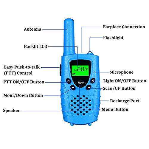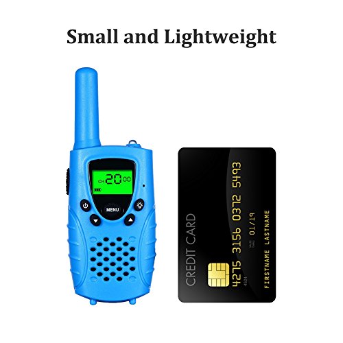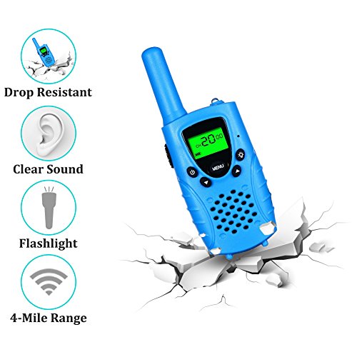 [KID-FRIENDLY DESIGNS] - Portable and easy to use, 1.2m drop resistant, with vivid blue exterior, compact bodies, ergonomic design, channel lock function and simple push-to-talk operation, intended for kids aged 3 and up, these kids walkie talkies would make an amazing gift for your little one.