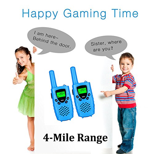 - Other convenient 2-way radio basics: - Long Transmitting Distance: With a range of up to 4 miles in open field and 1/2 to 1 mile in residential area, the kids walkie talkies are ready for most activities.