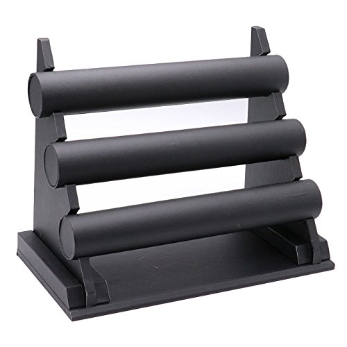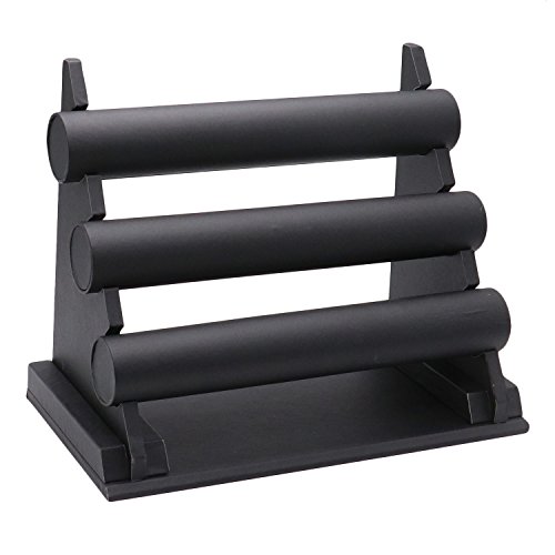 Buorsa 3-Tier Faux Leather Bracelet Holder Watch Necklace Jewelry Display Stand--Black