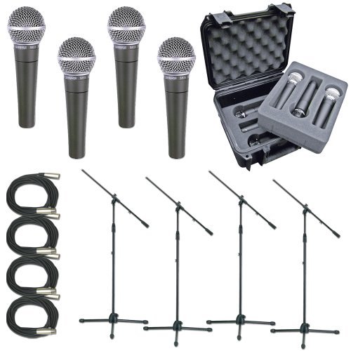 -. Title : Shure 4 x SM58 Mic Pack W/Stands Cables Case