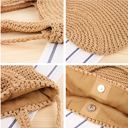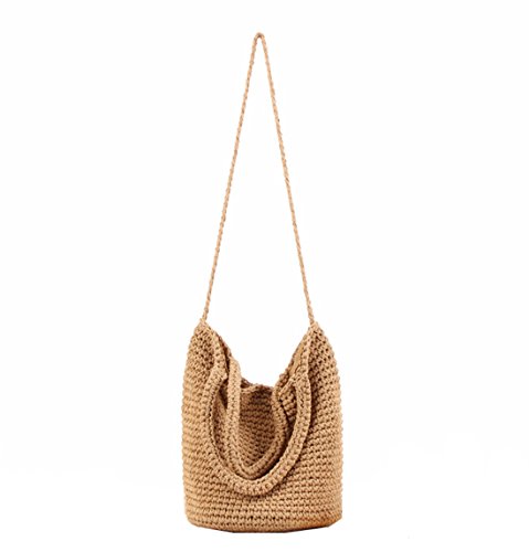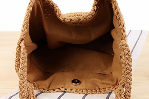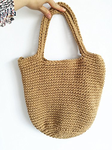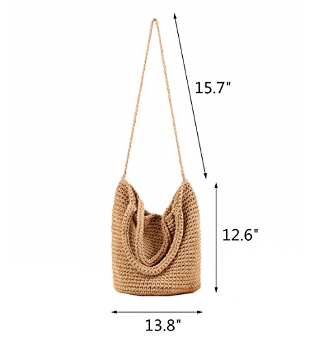 Andear Womens Cotton Woven Top Handle Handbag Crochet Bucket Bag Summer Beach Vacation Tote Shoulder Bag