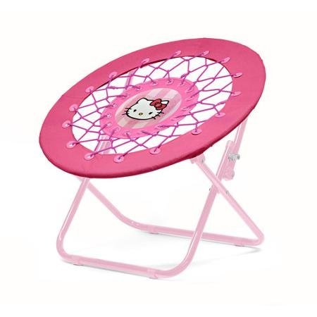 Let a little princess watch TV, read or play games in style with this darling Sanrio Hello Kitty Chair. The frame is constructed of sturdy and durable metal and features a round canvas seating area that is firmly secured by elastic cords. The center canvas showcases a white Hello Kitty wearing her signature red bow on a background of pink and white stripes. This kids' web chair folds up for ease of transporting and storing when not in use. Pair with additional Hello Kitty decor and merchandise to create a total look.