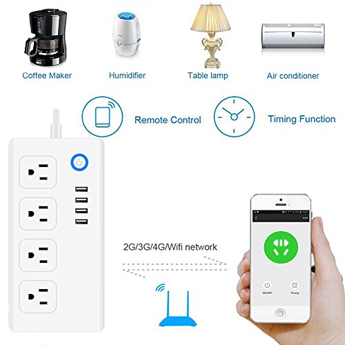 Smart Power Socket: This WIFI Smart Power Strip works with Amazon Alexa Echo to allow individual voice control, enables you to control your home appliance via your IOS/Android Smart phone or tablet wherever you are.