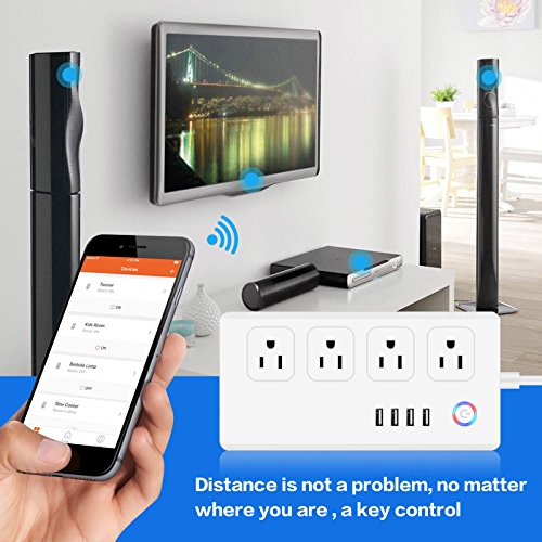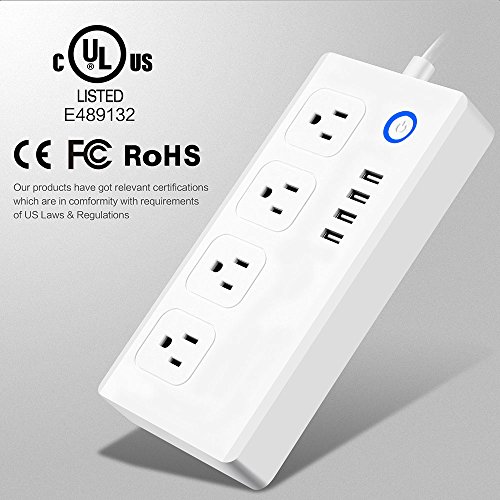 Multi Smart Outlets: 4-outlet and 4-USB smart power strip for homes and offices, meet your daily need. Ideal for multi device, such as computer, laptop, indoor lights, space heaters, fans and other appliances at the same time.