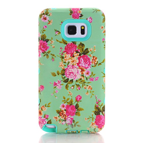 Note 5 Case, Galaxy Note 5 Case, CexCob Orchid Vintage Floral [Hybrid 3 in 1 Impact Resistant Shockproof Protective] Silicone & Plastic Defender Armor Combo Case for Samsung Galaxy Note 5, Mint