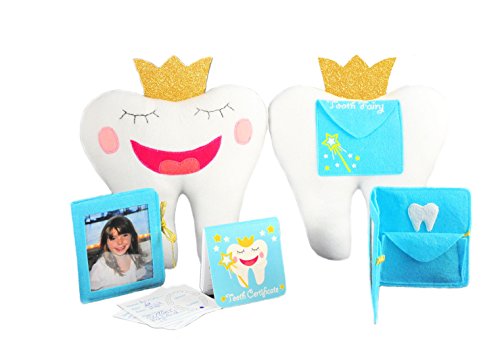 Tooth Fairy Pillow With Notepad And Keepsake Pouch. 3 Piece Set Includes 9" x 8" Pillow With Pocket, Dear Tooth Fairy Notepad, Keepsake Wallet Photo...