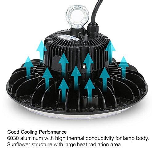 Want clear vision in your workshop, warehouse or stadium at night? This high bay light that provides 100W high power and 11000LM high brightness will provide you reliable illumination. Lamp body made of die-casting aluminum with high thermal conductivity, radiator designed in sundflower structure to expand heat radiation area, it can effectively dissipate heat. It is a lamp with high brightness and good cooling performance. It is a good choice for factory, workshop, warehouse, exhibition hall, stadium and mine.