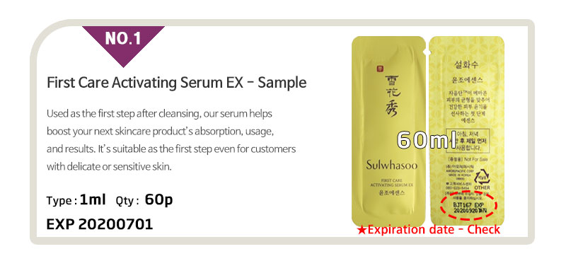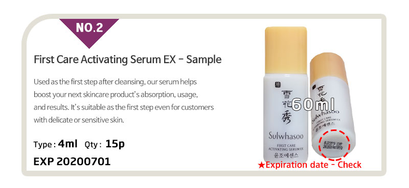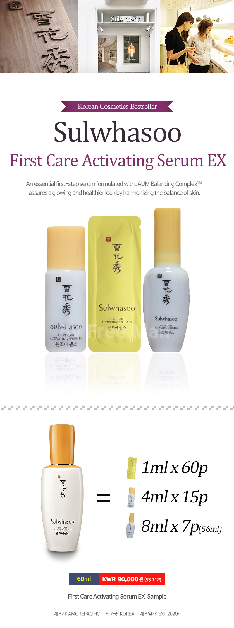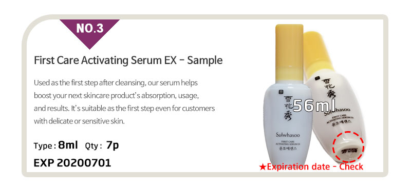 Pump 2~3 First care activating serum onto your palm and spread evenly across your face.