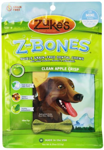 Doggy breath comes from both the mouth and the gut and Zuke's Z-Bones fight it in both places. The firm texture helps clean teeth and gums, and fennel starts working in the mouth right away. On the inside, Z-Bones help improve digestion with alfalfa, parsley and rosemary, keeping doggie breath at bay for the long haul. Made in the USA.Feature