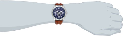 -. Feature : Multifunction features include day, date, and GMT (24 hour) sub dials / Silver-tone, luminescent, hands and hour markers on the Blue dial / Brown, genuine leather, strap / Precise quartz multifunction movement / Water-resistant to 30 M (99 feet) / Water resistant to 99 feet (30 M): withstands rain and splashes of water, but not showering or submersion