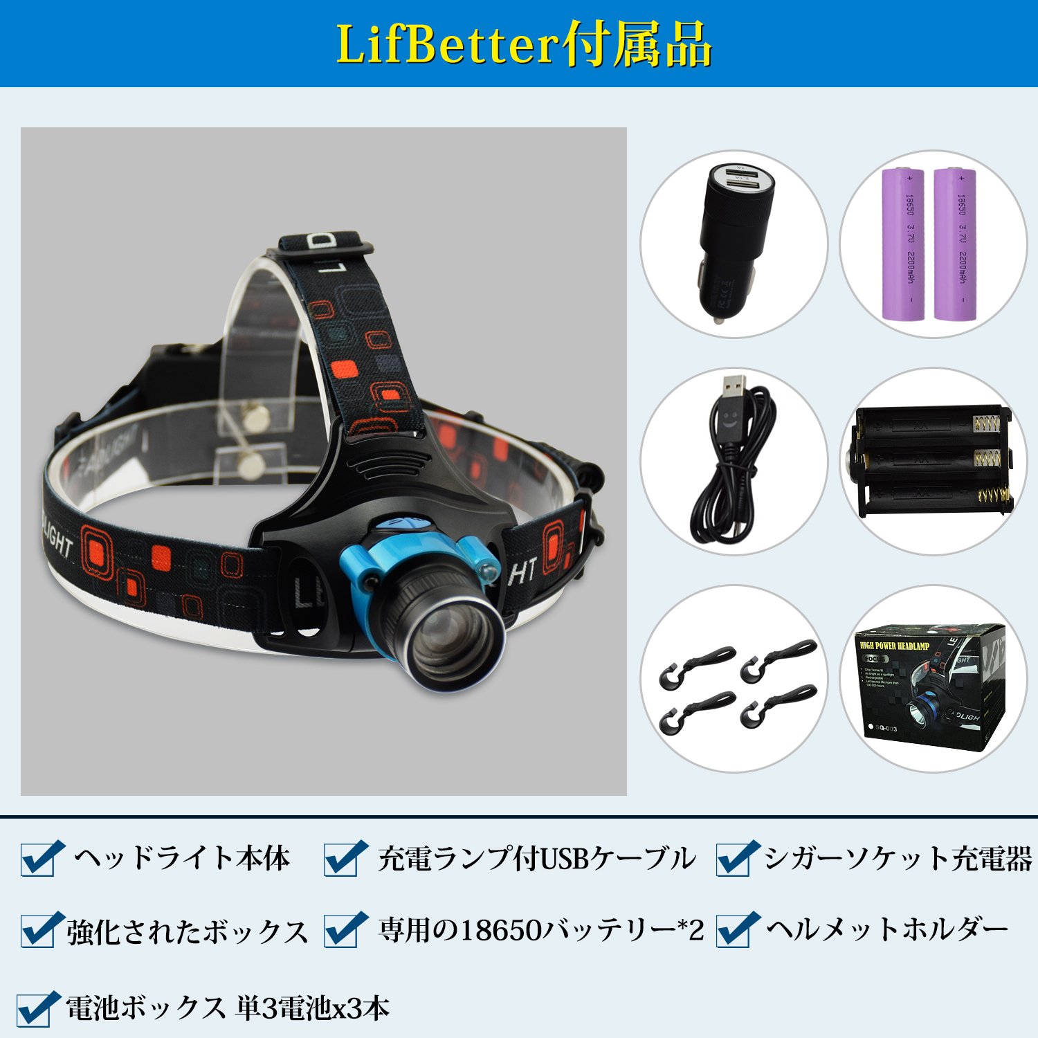 Battery :: 2 × 18650 type (battery included), AA battery × 3 pieces Not included