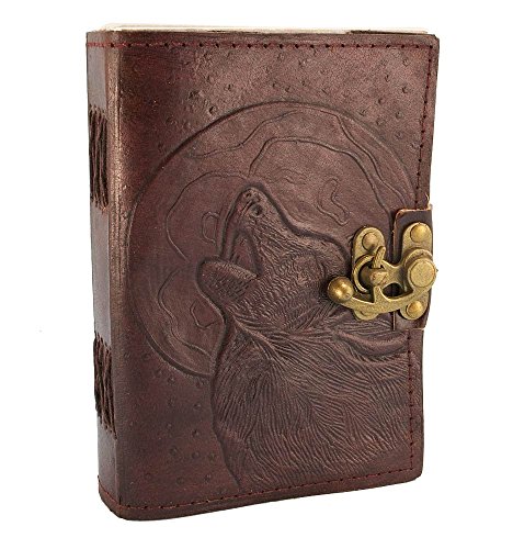 Hand Tooled Blank Leather Journal Embossed Howling Wolf Diary
