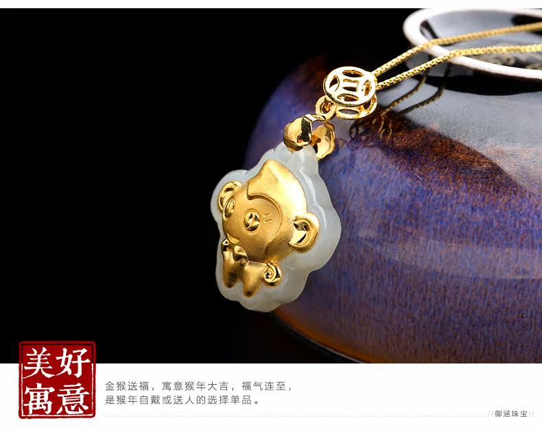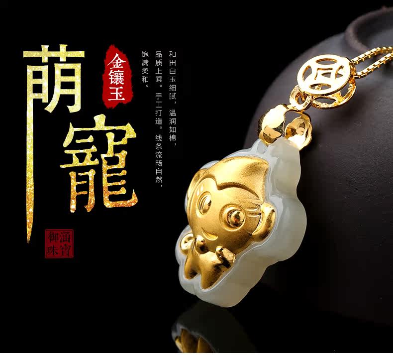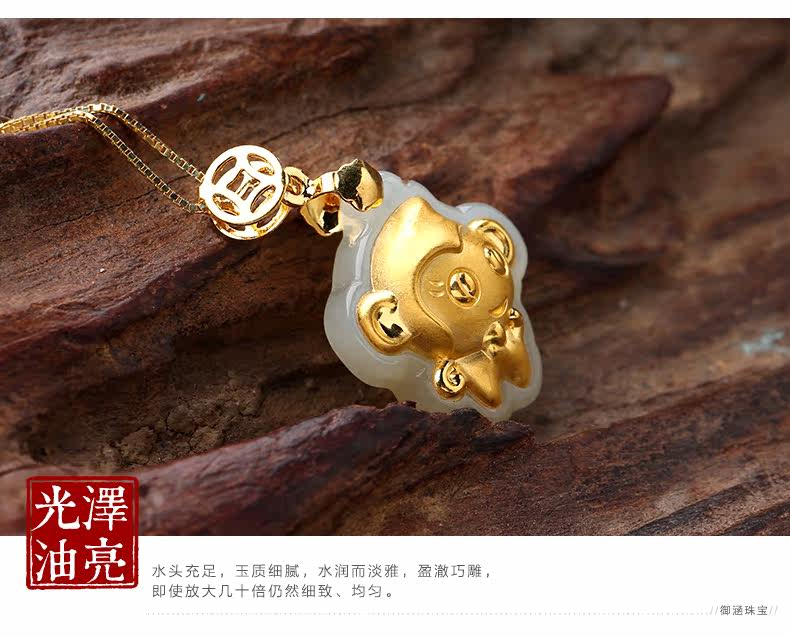 和田白玉金镶玉吊坠玉佩男女款天然玉石项链挂件