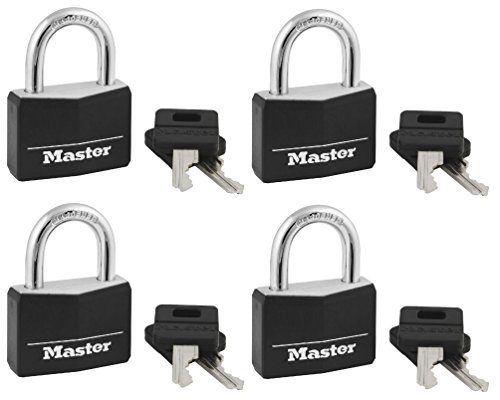 Master Lock 141D Solid Aluminum Padlock, Black Cover, 1-9/16-inch, 7/8-inch Shackle, 4-Pack