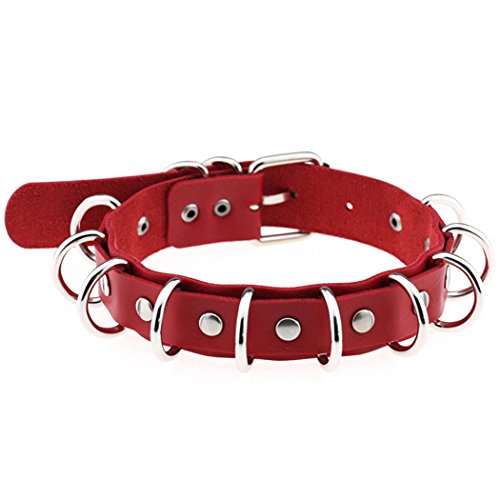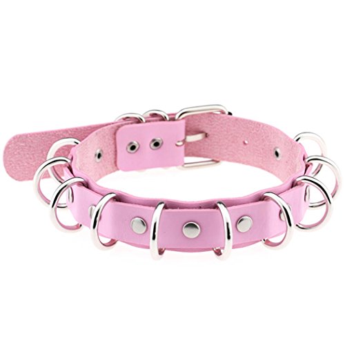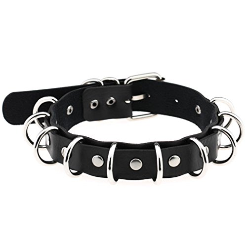 (xzbailisha)/Accessories/Belts Buckles/DIRECT FROM USA/Women Punk Necklace Adjustable Double PU Ring Neck Collar