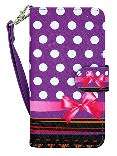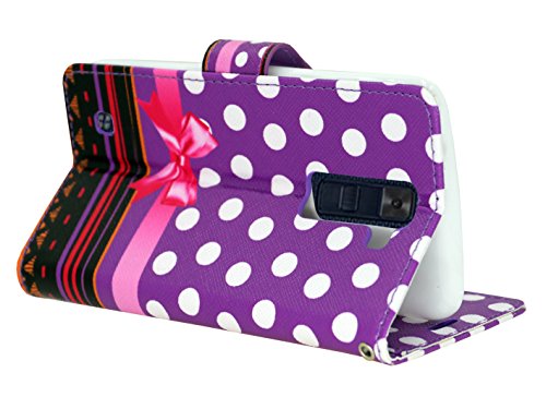 LG K8 / LG Escape 3 / LG Phoenix 2 Case, Mstechcorp, Unique Design Flip PU Leather Fold Wallet Pouch Case Premium Wallet Flip Case - Includes Accessories (Purple Dot)