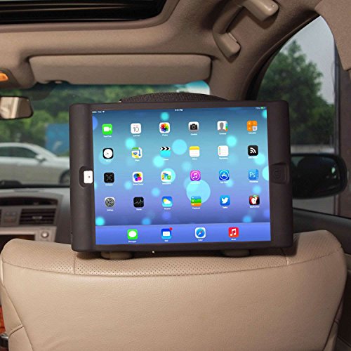 TFY Kids Car Headrest Mount Holder for iPad Air (iPad 5 5th Generation) - Detachable Lightweight Shockproof Anti-slip Soft Silicone Handle Case - Black ((Do NOT fit iPad Air 2))