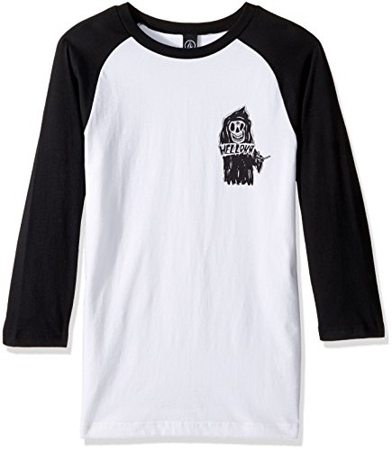 Studio : Volcom Young Men's Publisher : Volcom Young Men's Binding : Apparel Product Description You've got everything you need in the hello ha 3/4 raglan sleeve tee. A perfect companion in any circumstance. Designed with a basic fit and contrast sleeves. The logo art is screened at left chest. 0