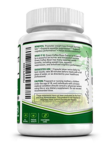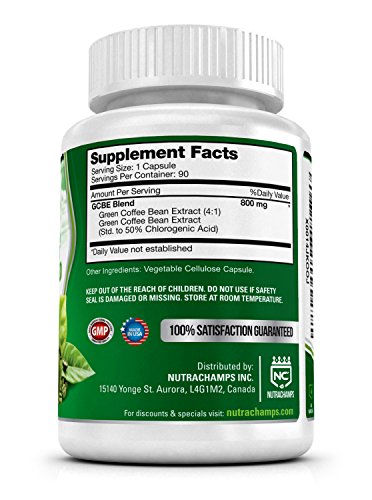 -. Feature : ★ WHAT IT IS - Green Coffee Bean Extract is known to be a powerful fat burner & metabolism booster, and has many reported health benefits, including weight loss, appetite suppression, and enhanced cognitive performance. / ★ WHY US - Our Green Coffee Bean Extract is made with only the purest & most potent natural ingredients so you know what you are putting into your body is pure & effective. Our blend contains GCA , and this natural chlorogenic acid works to maximize the benefits of green coffee bean. / ★ PROVEN QUALITY - NutraChamps always goes the extra mile to ensure our supplements have passed extensive third-party quality control tests before being bottled. We use only FDA approved, cGMP certified manufacturing facilities in the USA for our products, & our facility utilizes the most stringent quality control measures to ensure you're getting the same healthy ingredients in each capsule. / ★ ORGANIC & NON-GMO - We take pride in our entirely organic & premium formula & guarantee that no expense has been spared in ensuring the highest quality nutrients for our customers. We've invested the time & resources to bring you the purest organic & non-GMO ingredients in each veggie capsule. / ★ 100% MONEY BACK GUARANTEE - Order today Risk Free with our no-questions asked money back guarantee and unmatched customer service! If you aren't fully satisfied, let us know and we'll refund your entire purchase without any hassles!