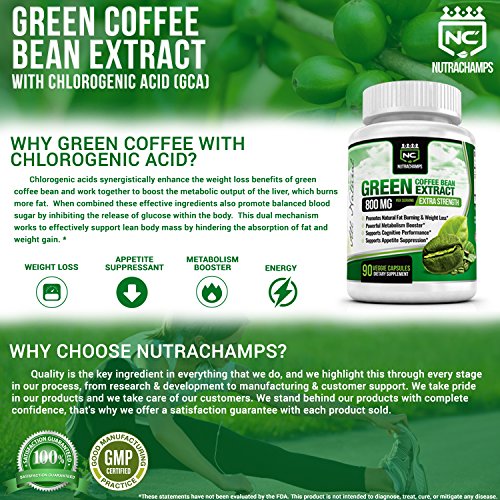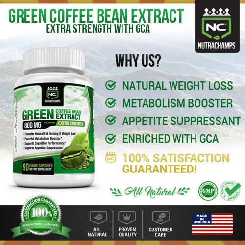 -. Title : NutraChamps Green Coffee Bean Extract 800mg with GCA - 90 Veggie Capsules - Best 100% Natural Weight Loss Supplement - Highest Quality , Purity & Potency Available on Amazon