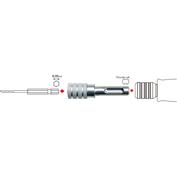 ●六角軸シャンクの先端工具をSDS専用ドリル等に取付けられるアダプター。
