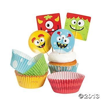 Bakery Supplies - Silly Monster Cupcake Picks and Baking Cups (1-Pack of 100)
