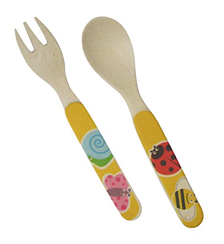 Ecobamboo Ware Kids/Babies/Toddlers Bamboo Utensil Set, Fork and Spoon, Bug Theme