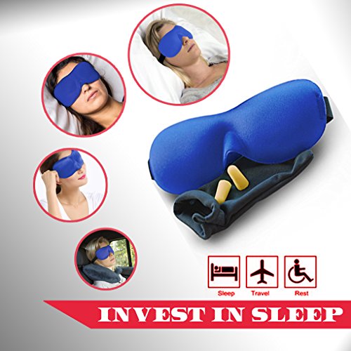 3D CONTOUR DESIGN: A unique designed with a very soft protective curve memory foam feature. It is made with no pressure on the eyes that keep the fabric away from your eyelids as you rest. HIGH QUALITY MATERIALS: The sleeping mask has a very light breathable fabric that gives you comfort during sleeping time with no pressure. Used memory foam materials and with contour nose fit that keeps your eyes shielded from light. STRESS FREE. It is an effective tool to eliminate fatigue, deep sleep and gives you more energy to work and study. INCLUSION. Eye Mask, Ear Plug and Pouch COLORS. Blue and BlackFeature