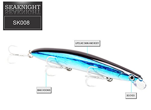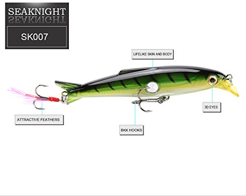 -. Binding : Misc. -. Brand : SeaKnight -. Feature : 3D eyes and lifelike laser painting surface will be irresistible to big fish. / Rapid diving action and life-like swimming actions in water when you retrieve. / Two sharp BKK fishing hooks are anti-corrosion, strong and durable, fit for freshwater and saltwater. / Tungsten balls inside keeps the balance and enhances casting distance, magnetic force vocalization attract fish to bite. / Streamlined appearance reduces the water resistance and provides longer casting distance and smoother swimming actions. -. IsMemorabilia : 0 -. Label : SeaKnight -. Manufacturer : SeaKnight -. MPN : Minnow H -. PartNumber : Minnow H -. ProductGroup : Sports -. ProductTypeName : SPORTING_GOODS -. Publisher : SeaKnight -. Studio : SeaKnight -. Title : SeaKnight Suspending Minnow Sea Fishing Lures for Bass Pike