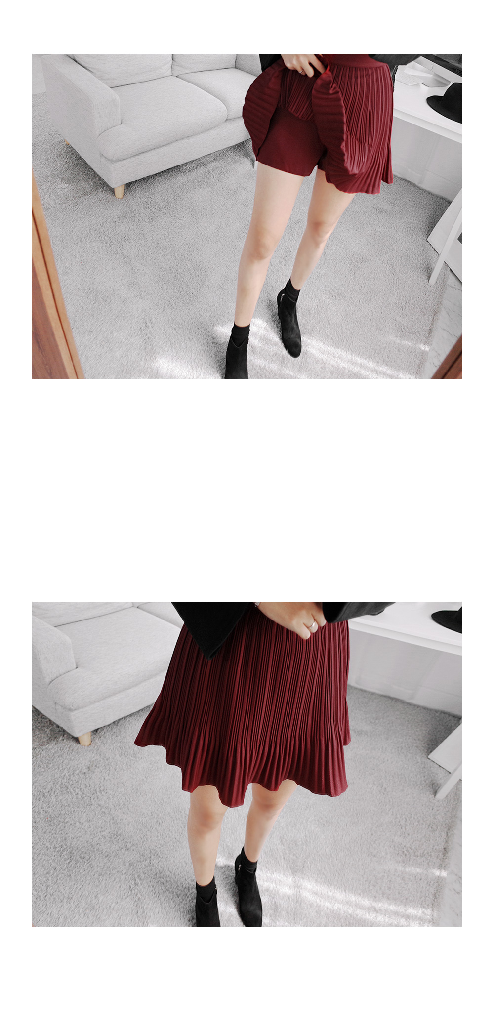 걸리쉬한 무드의 플리츠 큐롯팬츠!매력적인 컬러감이 돋보이는 아이템^^허리 밴딩으로 착용감이 편안하면서숏한 길이로 날씬한 바디핏을 보여 주구요,페이크 디자인의 큐롯팬츠 아이템으로짧은 길이에도 부담없이 입을 수 있어요~플리츠 디자인으로 걸리쉬한 느낌이 돋보이며,옆라인 콘솔지퍼로 오픈클로징까지간편하게 마련된 데일리 아이템이에요^^*부담없는 디자인으로 데일리하면서유행에 구애받지 않는 러블리 큐롯팬츠에요!