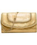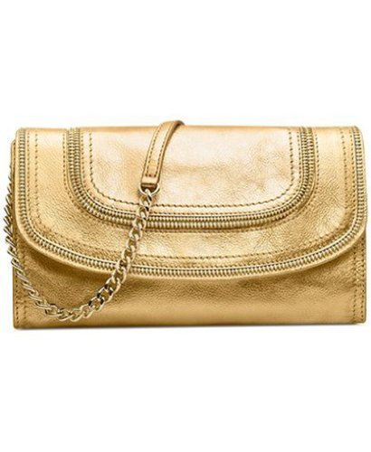 -. Feature : 10.25 W x 5.5 H x 1 D inches / Detachable shoulder strap with 15 inch drop / Leather / Color: Gold