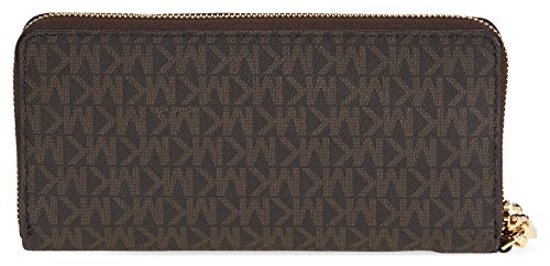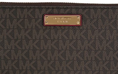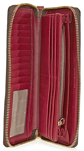 -. Title : Jet Set Travel Logo Continental Wristlet- Brown and Mulberry