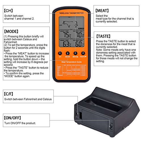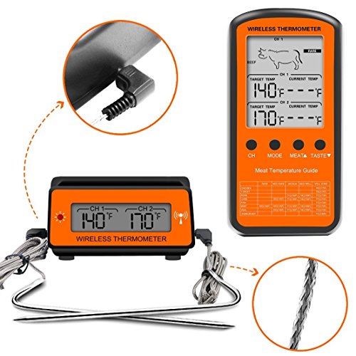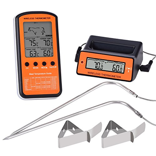 Studio : KUNSTWORKER Publisher : KUNSTWORKER Product Description A perfectly cooked meal requires a perfect temperature reading. Whether cooking from the family cookbook or simply trying something new, getting that accurate and exact temperature will always get you the best results. With a mobile receiver that will keep you updated on the temperature of your meal, feel free to mingle, do chores or watch TV without ever having to physically check on your food! The wireless meat thermometer equipped with dual-probe technology, you have the option of using two meat probes for reading internal temperature of two meats or use one as an oven probe that will accurately read its surrounding temperature. If you are preparing for the big game day, having a casual dinner or cooking for the family, expect only the best results while using this smoker thermometer. 0