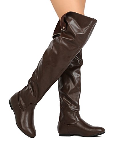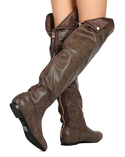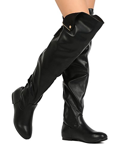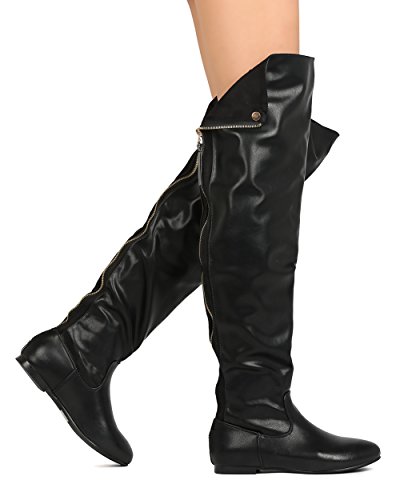 Nature Breeze Vickie-45 Women Leatherette Thigh High Hind Zipper Flat Boot