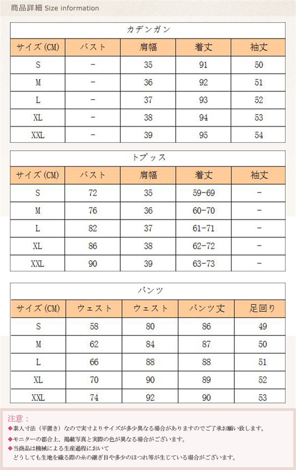 素材:ニットセット内容:カーディガン+ワイドパンツ+セーター『ゆるカワこなれ感♪バルキーニット』秋冬に上品であったかいニットセットアップ。ゆったりとしたシルエットが体型カバー、さらに大人可愛く演出体にフィットする柔らかな生地がボディーラインを美しく見せてくれる◆ 商品写真はできる限り実物の色に近づけるよう加工しておりますが、お客様のお使いのモニター設定、お部屋の照明等により実際の商品と色味が異なる場合がございます。 ◆ 実寸(平置きした状態でメジャーで計測したもの)とヌード寸(タグについているおおよそ●cmの方対象を表すサイズ表記)とは測り方が異なります為、サイズ比較対照となりません。※品名【即納】商品以外で、メーカーから取り寄せを致しますので、通常8-10日間前後お時間を頂いております。※メーカー生産都合、休日等により前後する場合がございますので、予めご了承くださいませ。※当店では複数店舗で在庫を共有しており、システムで在庫の調整を行っておりますが、アクセス集中等により在庫数の更新が間に合わず、実際の在庫数値との誤差が生じる場合がございます。
