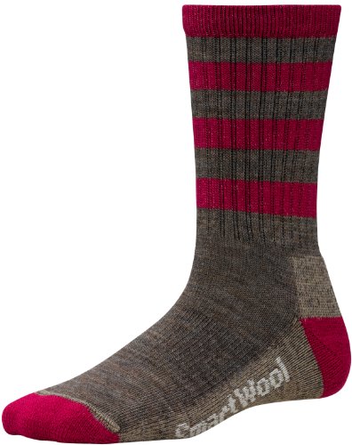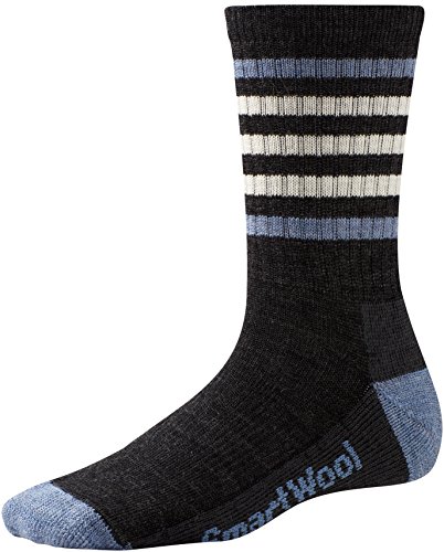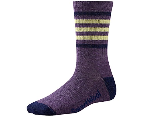 Crew sock sits at the calf. Light cushion design provides ideal comfort over a variety of terrains. Supportive arch band. Flat knit toe seam. 62% merino wool, 36% nylon, 2% elastane. Machine wash inside out on a warm, gentle cycle. Tumble dry low, lay flat, or line dry. Knit in the U.S.A. from imported yarn.
